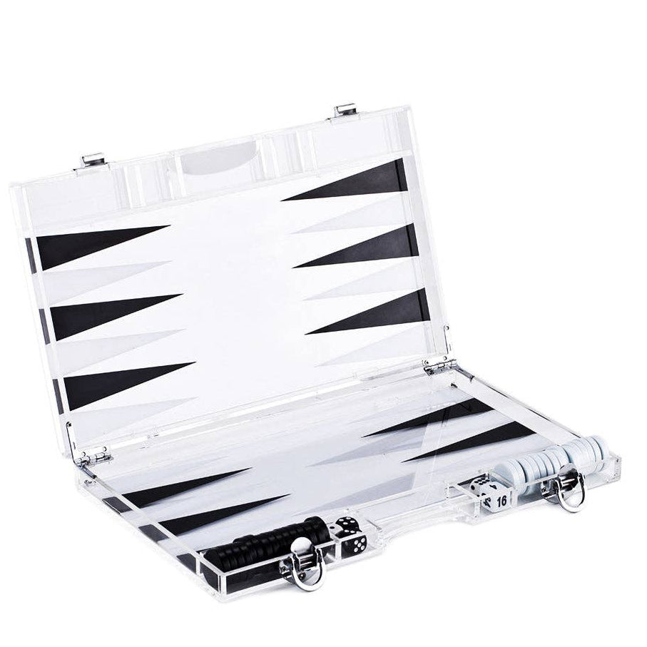 Experience the classic strategy game in a new light with the Lucite 18'' Backgammon set from Lainy Home. Expertly crafted and beautifully designed, this board game set blends traditional gameplay with a modern, luxurious aesthetic. It's perfect for both casual family game nights and sophisticated gatherings. As part of our commitment to enhancing homes with high-quality, affordable luxury, this backgammon set is sure to become a treasured addition to your collection. Elevate your gaming experience with Lainy Home.
