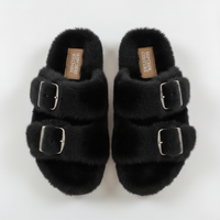 Faux Fur Clogs - Denim Blue is a versatile slip-on footwear option designed for both indoor and outdoor use. These fluffy, roomy shoes are recommended to be sized down for half sizes to ensure a snug fit.