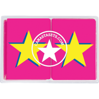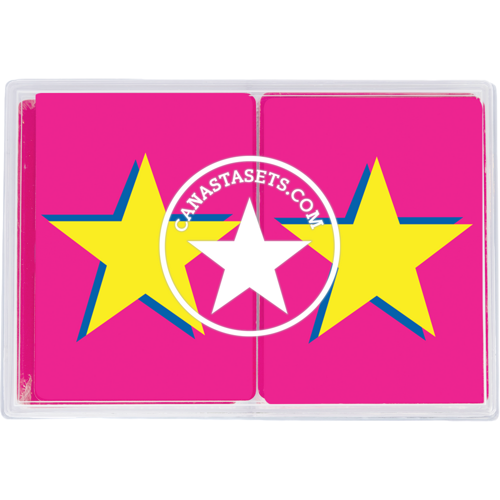 Best selling star now in a pink background color. PVC plastic made for easy shuffling and fun playing.
