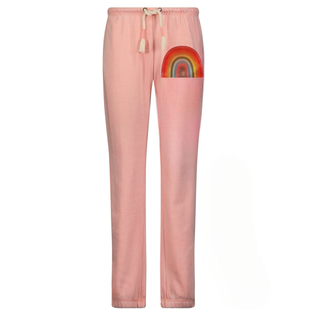 Super soft sweatpants with custom print and covered elastic waist and pull drawstring.
