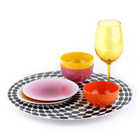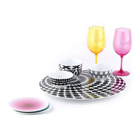 The Lazy Susan opens up limitless opportunities. Here are a few we love. Spin some apps like cheese, fruit, and crackers. Rotate a beautiful dessert tray with cakes and pastries. Organize your pantry and make spices easy to grab. How about a breakfast spread or a mini bar? Of course, our Lazy Susan makes a stunning centerpiece at your dining table. Cake plate, tidbit plate, finger food plate, dessert plate.  - High-grade, glazed melamine plate is scratch and shatter resistant, non-absorbent, and BPA-free. - Includes rubber rimmed base to prevent sliding. - Forms a stunning centerpiece for shared condiments and drinks. - Comfortably holds tumblers, mini bowls, and salad bowls. * Measurements: 15.5” D x 1” H, 2.7 Lb.