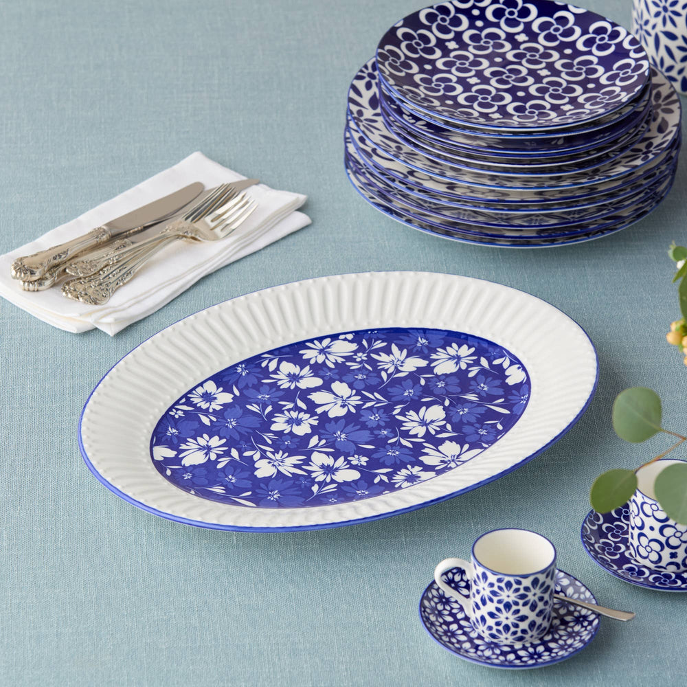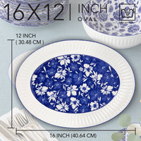 Enhance your dining experience with the Madison Oval Platter, a perfect blend of elegance and functionality. Crafted from high-quality porcelain, this 16 x 12-inch platter features a ribbed exterior and a smooth finish for a sophisticated look. The centerpiece showcases a stunning blue and white floral design, beautifully framed by a classic white border, creating a timeless addition to your serveware collection. Designed for versatility, this platter is ideal for serving roasts, appetizers, side dishes, or even desserts, making it perfect for casual meals or special occasions. Its generous size and elegant design ensure that every dish is presented beautifully. For modern convenience, the Madison Oval Platter is microwave-safe for quick reheating and dishwasher-safe for hassle-free cleanup, offering practicality without compromising on style. Pair it with other pieces from the Madison collection for a cohesive table setting, or gift it to loved ones for a thoughtful present.