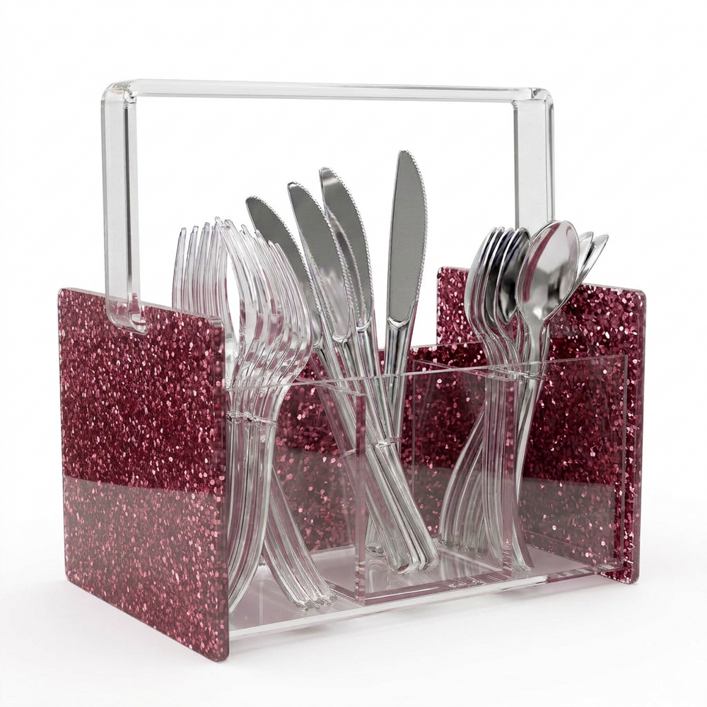 Keep it all together, wherever you’re serving. This clear acrylic caddy is designed to organize your silverware in style — from everyday meals to outdoor entertaining.